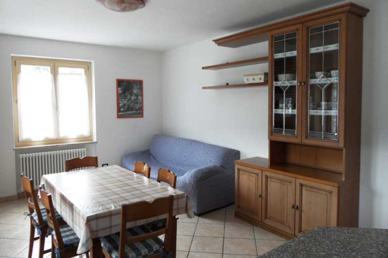 L’appartamento è composto da cucina-soggiorno con divano letto matrimoniale, 2 stanze da letto (4 posti letto), bagno con vasca/doccia, balcone e giardino.