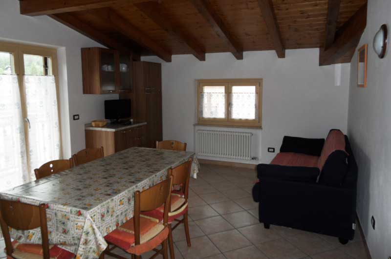 E’ dotato di tv colori, forno elettrico, piano cottura a gas, frigo con cella freezer, phon e lavatrice.